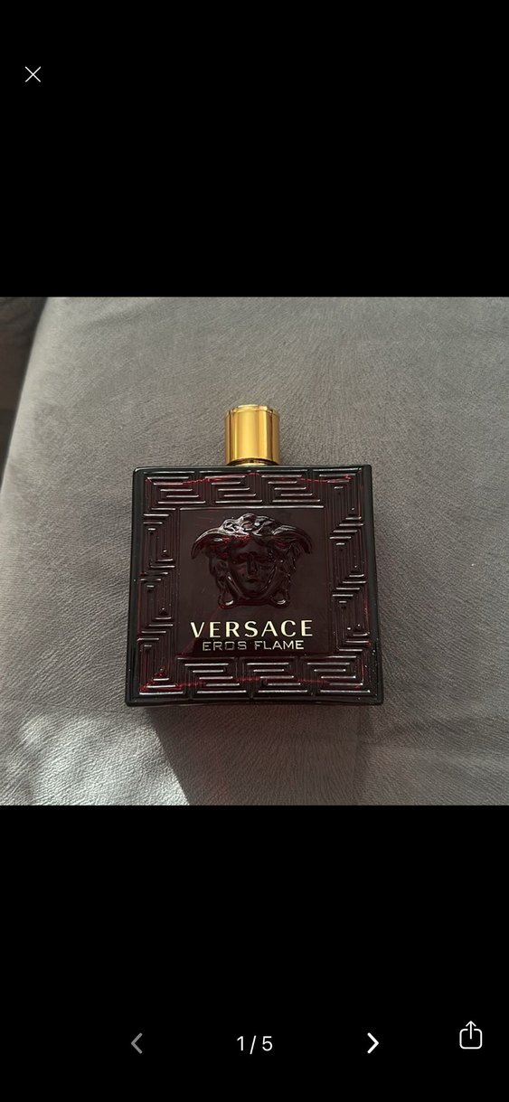Versace Eros Flame, koyu bordo renkli, modern klasik tarzda erkek parfümüdür. Medusa başı ve altın kapak detayları bulunur.