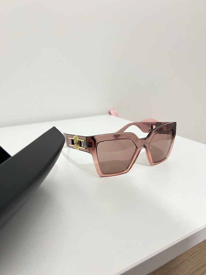 Şeffaf açık kahve kadın güneş gözlüğü, çağdaş Paris tarzında, köşeli çerçeve ve ince altın detaylara sahip. Moda tutkunları için ideal.