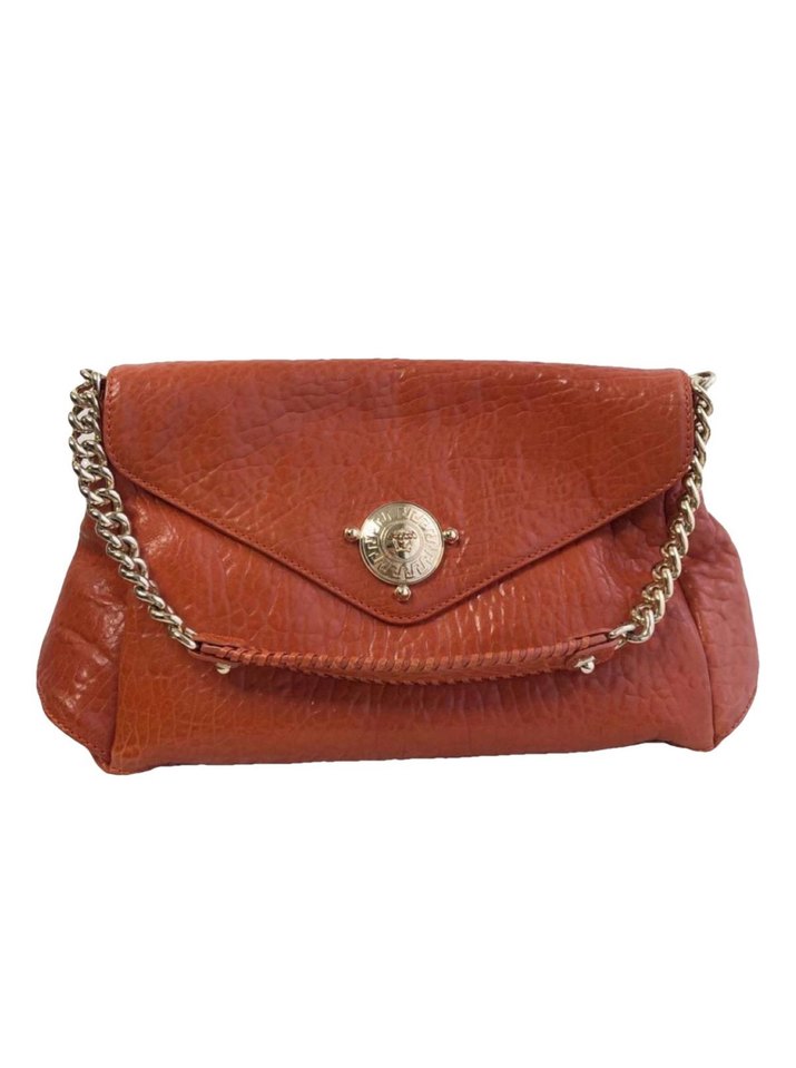 Versace Kiremit Deri Çanta. İster kol cantası ister clutch olarak kullanılabilir. Ölçüleri : 31 x 22 cm. Dolap boşalttığımdan fiyatları uygun tutuyorum