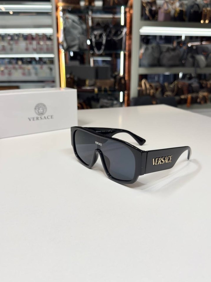 Versace marka, yanlarında logo detaylı siyah kadın güneş gözlüğü. Klasik şıklığı sokak modasıyla buluşturur.