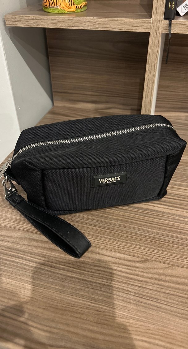 Versace marka siyah süet malzemeden, fermuarlı ve baskılı minimalist tasarımlı cantadır. Trendy casual sokak stiline uygundur.