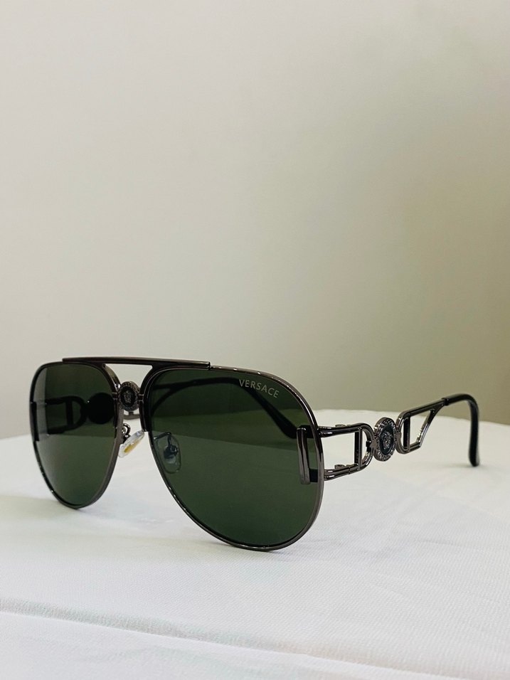 Versace siyah tokalı, koyu renk camlı unisex güneş gözlüğü, klasik zarafet ve modern stil sunar. ️