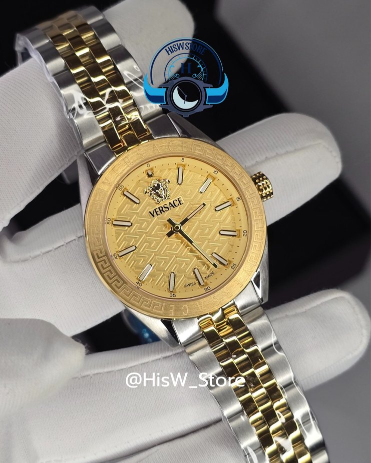 Versace V-Code Two Tone Bayan Kol Saati / 36 mm Çap / İncecik Kasa / Gold Gümüş Paslanmaz Çelik Kasa ve Kordon / Quartz Pilli Mekanizma / İşlemeli Hareli Kadran / 1 Yıl Garantili / Versace Kutusu Ekstra Fiyattır