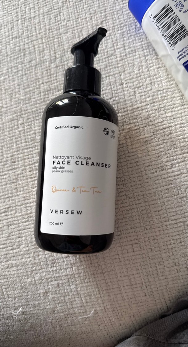 Versew markasına ait, organik sertifikalı, yağlı ciltler için kinoalı ve çay ağacı özlü yüz temizleyici, 200 ml.