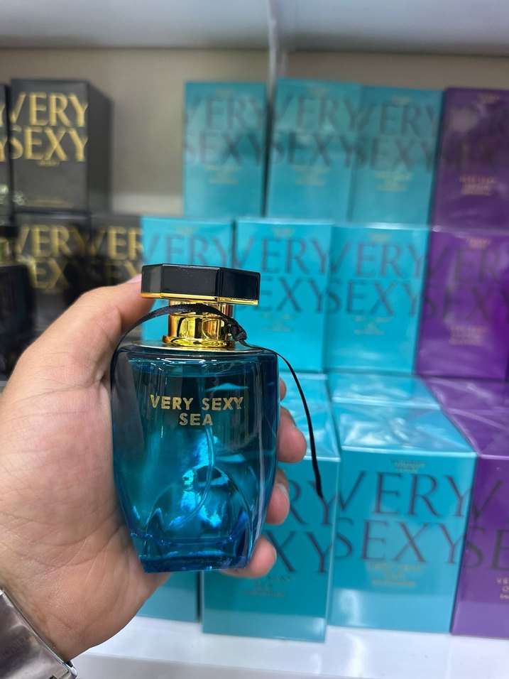 Altın detaylı kapaklı mavi şişede Very Sexy Sea kadın parfümü, ferah ve çekici koku sunar.