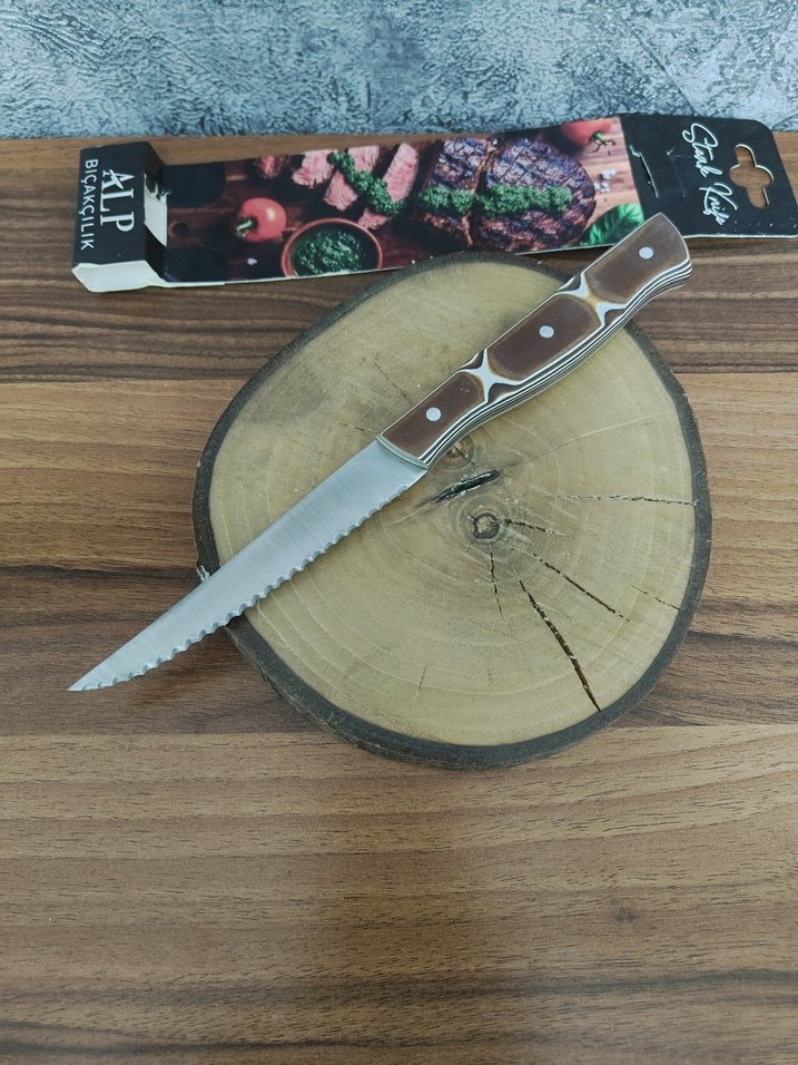 Verzalit antibakteriyel yanmaz saplı ve dişli paslanmaz çelik bıçağa sahip ekmek ve sebze bıçağıdır.