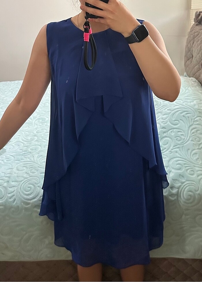 Ürün kusuru yoktur. Şifondur. Saks mavisi.