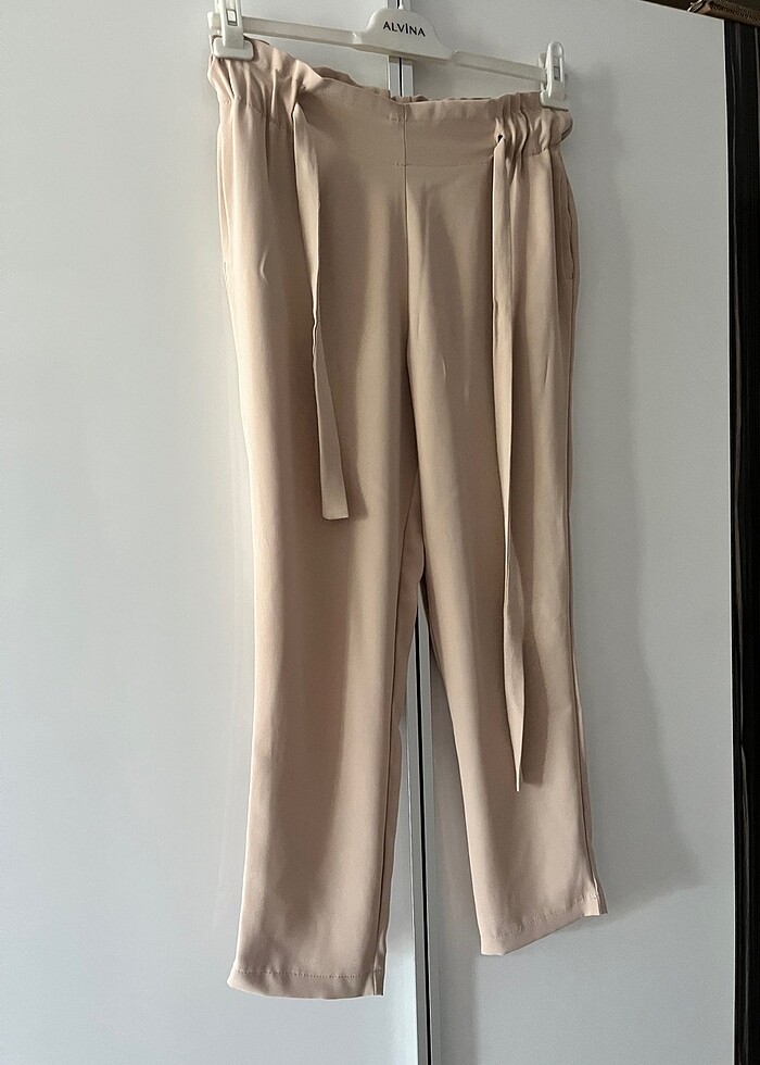 Vesna Adriana krep pantolon bej rengi, 36 bedendir. 3. Fotoğraftaki küçük ip çekmesi dışında hiçbir sorunu yoktur sayılı kullanılmıştır. Güncel fiyatı sitesinde 1000 TL’dir. Boyu 92 cm .