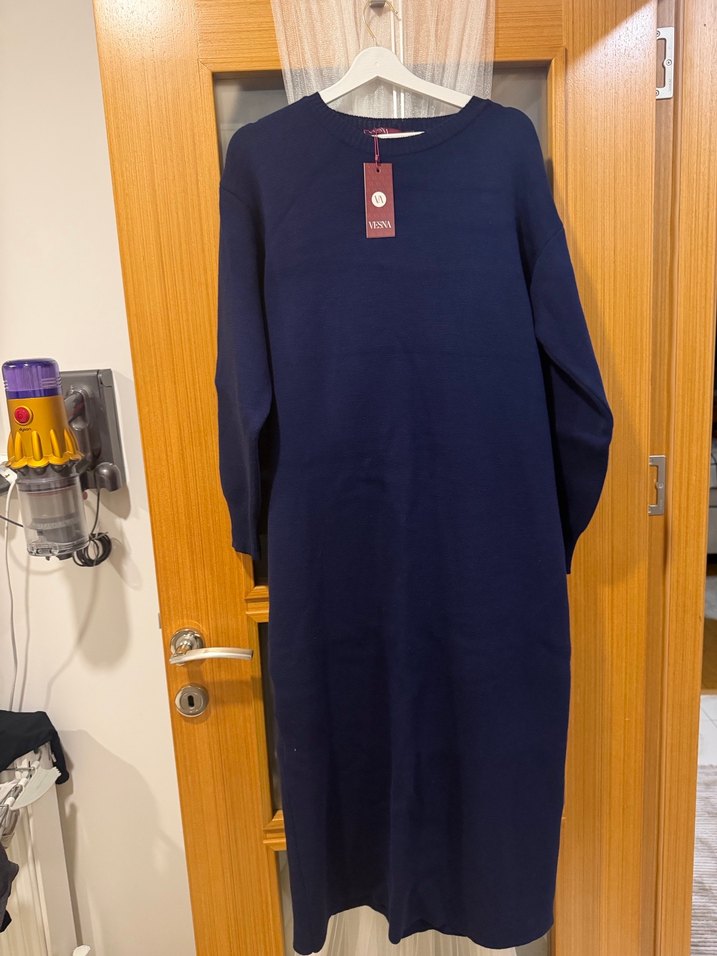 Lacivert renkte, uzun kollu ve yuvarlak yakalı bu uzun elbise, yumuşak ve sıcak kumaştan üretilmiştir. Rahat ve bol kesimiyle günlük kullanıma uygundur, sade ve zarif bir stil sunar.