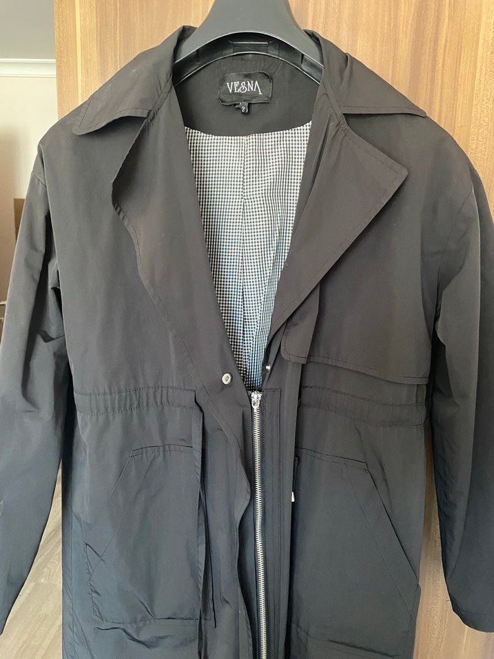 Vesna marka , üzerinde 2 beden yazıyor , 36-38 beden ile uyumlu , ince yağmurluk , deformesi yoktur , boyu 100 cm dir. Hiç bir kusuru , yırtığı yoktur . Küçük geldiği için satıyorum .