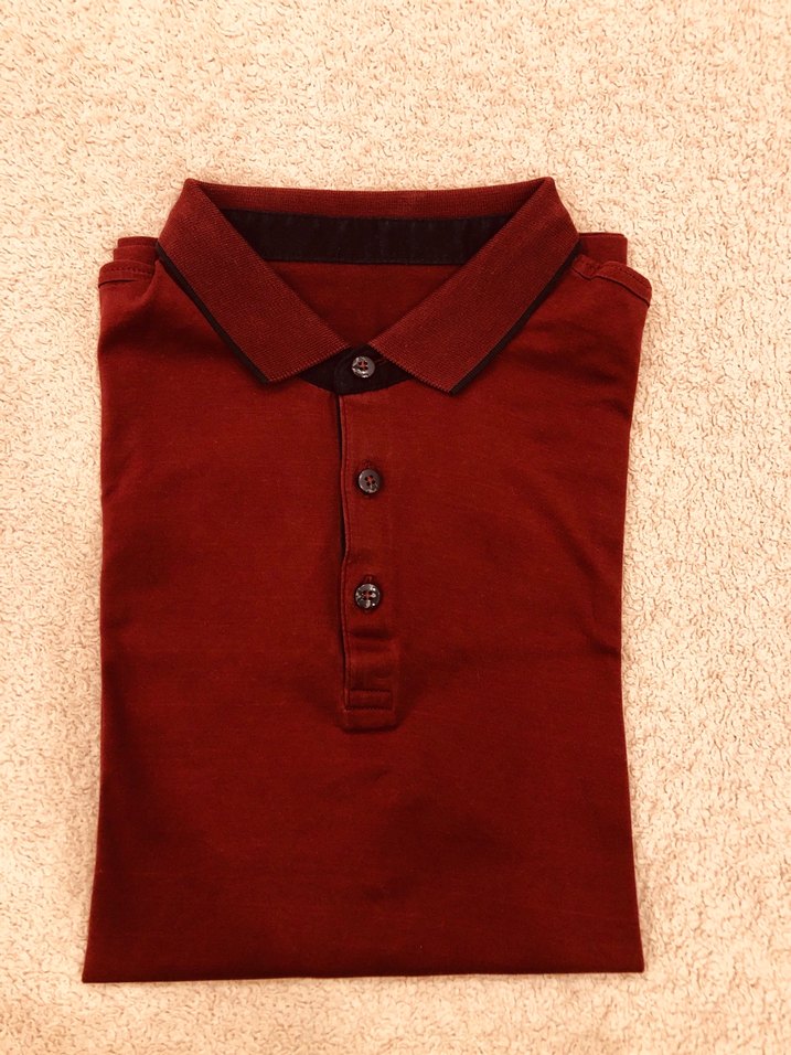 Bordo renkli erkek polo yaka tişört, düğmeli ve kısa kollu sorunsuz yepyeni beden uymadığından satışta