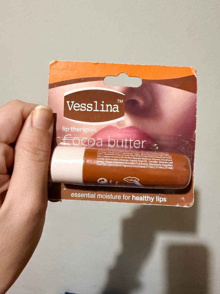 Vesslina dudak terapisi, kakao yağı içerir ve sağlıklı dudaklar için parlak bej renkte nem sağlar. Paketinde sıfır