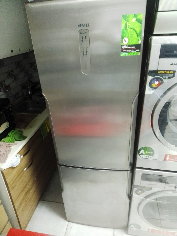 Vestel marka gri kombin buzdolabı, alt dondurucu bölmesi ve enerji tasarruflu yeşil etiketle çevre dostu performans sunar.