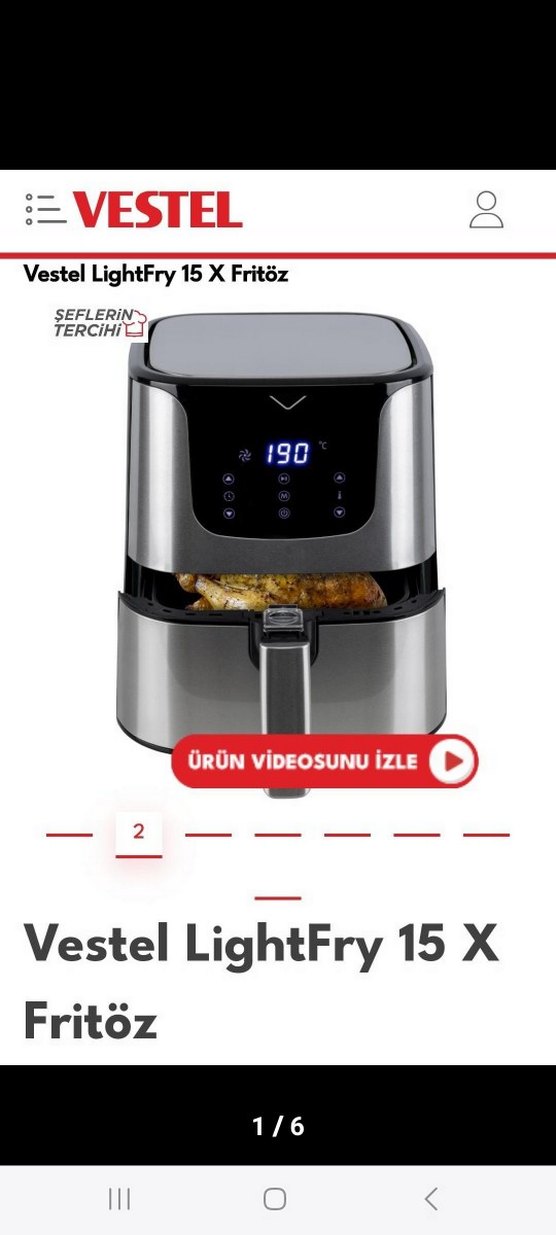Vestel LightFry 15 X gri fritöz, dijital dokunmatik ekran ve 190°C'ye kadar sıcaklık kontrolü ile daha az yağda sağlıklı kızartma sağlar.