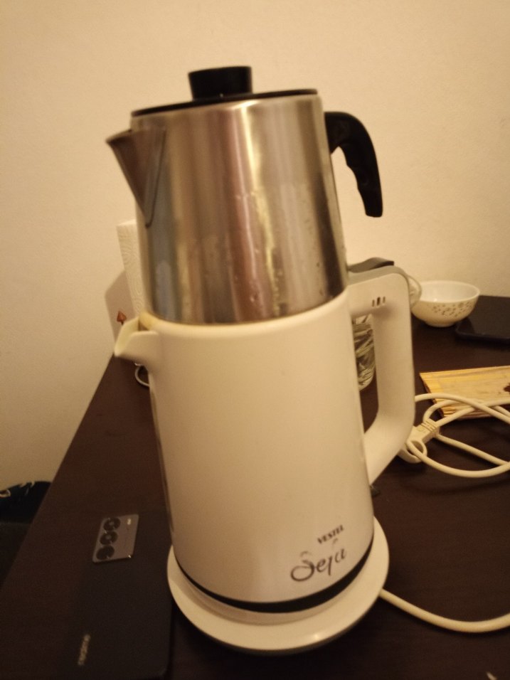 Paslanmaz çelik üst kısmı ve siyah sapıyla beyaz elektrikli çaydanlık, kolay kullanım sağlar. ☕ altı vestel sefa üstü Tefal olan mükemmel bir çay makinesi bu fiyata kaçmazzzz
