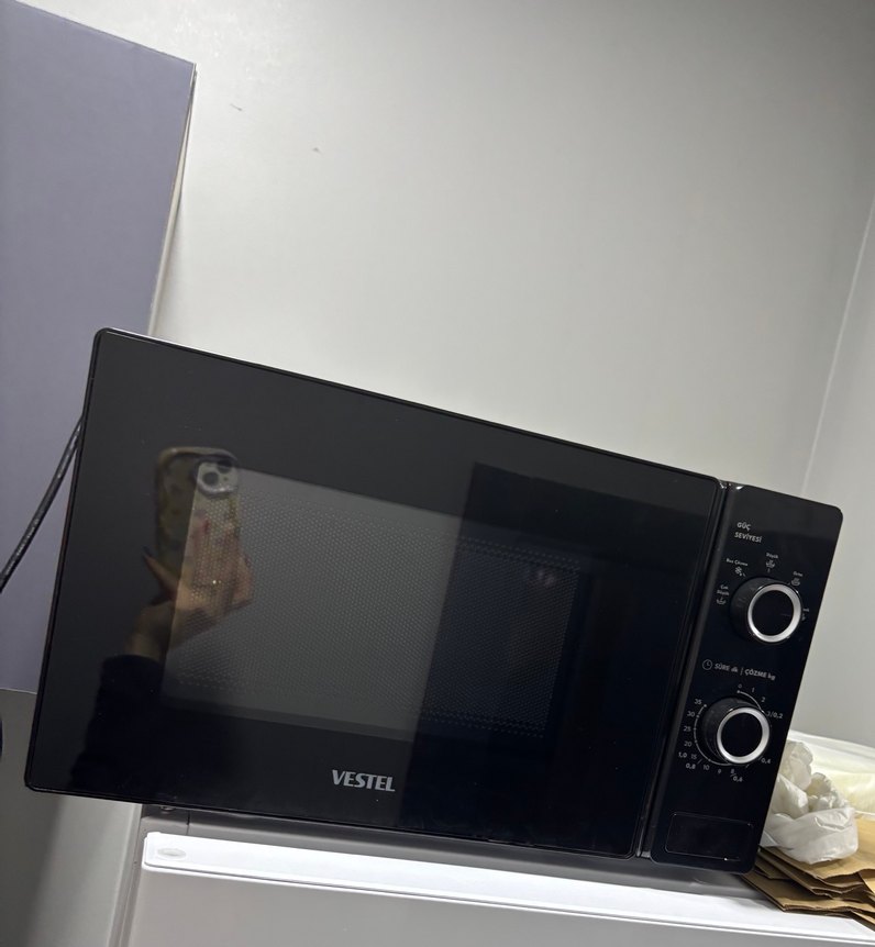 Vestel marka siyah mikrodalga fırın, kullanımı kolay manuel kontrol düğmelerine sahiptir. Fonksiyonel ve şık koyu tasarıma sahiptir. Çok kullanılmadı garantisi bitmek üzere