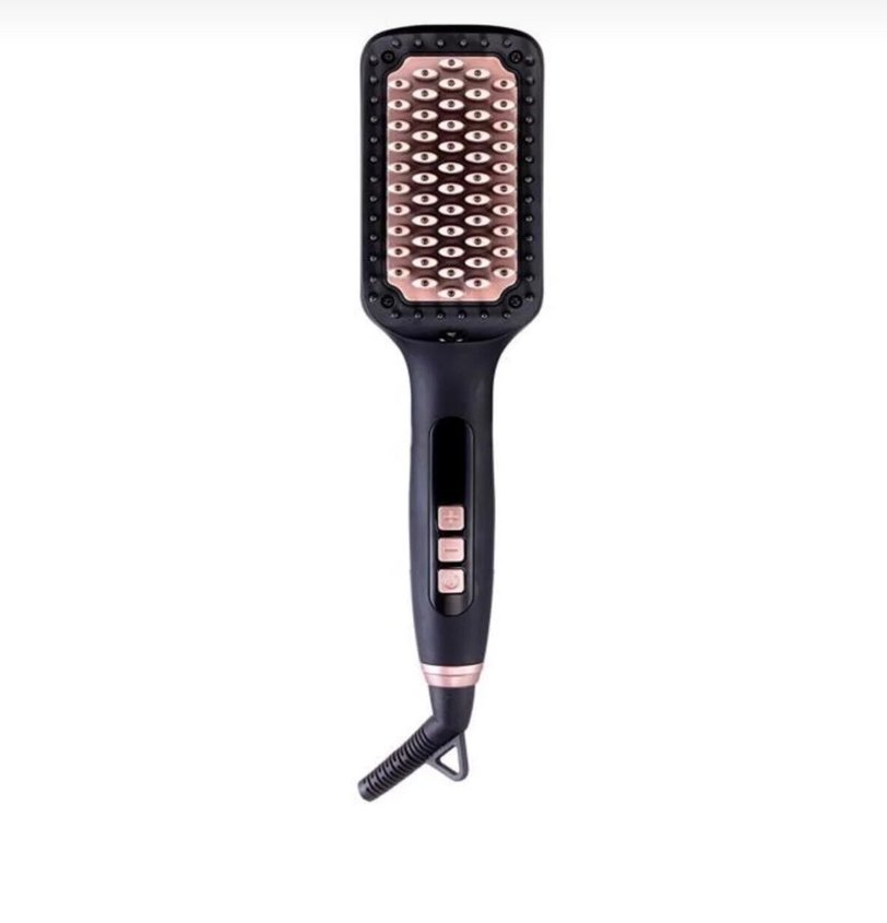 Siyah saç düzleştirici fırça, çok sayıda seramik uçlu ısıtıcı yüzeye ve kontrol düğmeli ergonomik tutacağa sahiptir. Hiç kullanılmadı. 27 Mart 2026 ya kadar garantisi devam ediyor