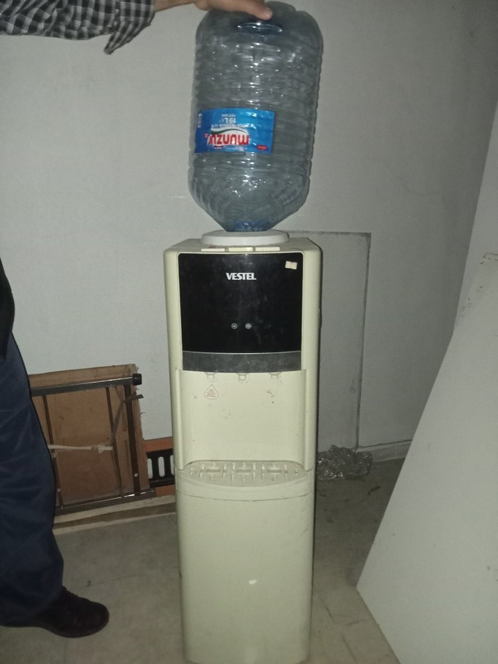 Vestel marka beyaz ve gri renkli, üstten su şişesi yerleştirilen su sebili. bir süre kullandık sonra depoya koyduk hiçbir sorunu yok