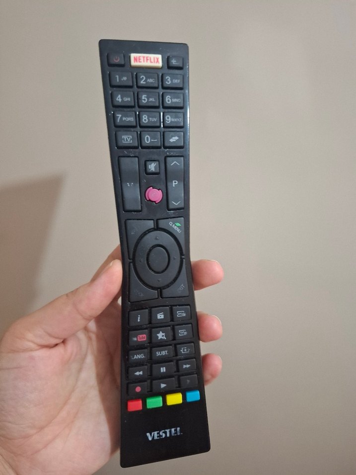 tuşları biraz zor basılıyor ama çalışan kumanda parça amaçlı vesaire kullanılabilir Vestel uydu alıcısı kumandası, hızlı erişim için Netflix tuşu bulunur. Kompakt tasarıma sahip, tüm standart gezinme ve kontrol tuşları mevcut.
