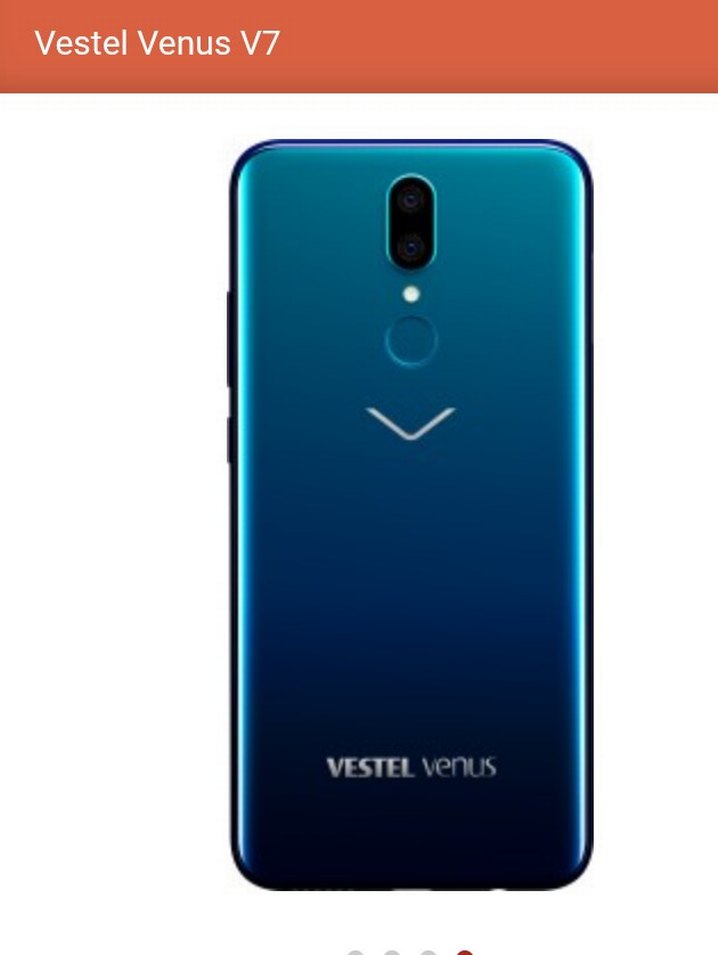 Vestel Venus V7, çift arka kameralı ve parmak izi sensörlü koyu mavi Android telefon. Arka yüzeyde Vestel Venus logosu bulunur.