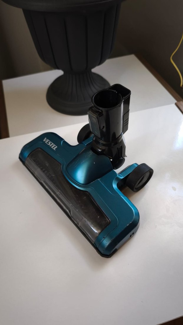 Vestel markalı koyu mavi elektrikli süpürge başlığı, tekerlekli ve geniş emiş alanlıdır. Süpürge gövdesine kolayca takılır. sadece başlık satiliktir