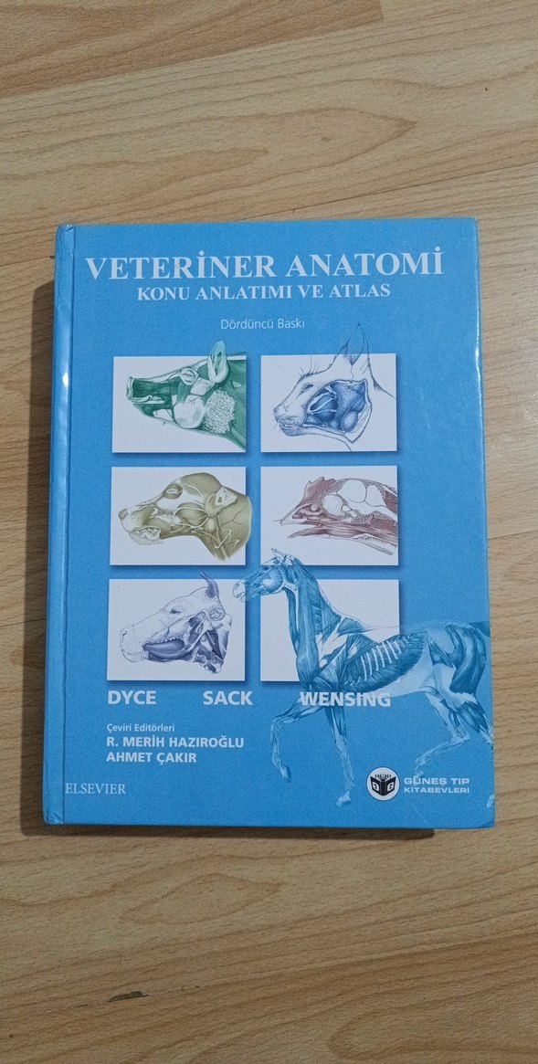 Veteriner Anatomi – Konu Anlatımı ve Atlas (4. Baskı) Dyce – Sack – Wensing Elsevier / Güneş Tıp Kitabevleri Veteriner fakülteleri için temel başvuru kaynağıdır. Konular anlaşılır şekilde anlatılmış olup detaylı ve renkli atlas çizimleri içerir. Kitap orijinal baskıdır. Genel durumu iyidir. Yalnızca ilk sayfasında isim soyisim yazmaktadır. Diğer sayfaları tertemizdir. İç sayfalar temiz, eksik veya kopuk sayfa yoktur. Veterinerlik öğrencileri ve anatomiyle ilgilenenler için oldukça faydalı bir kaynaktır. Veterinerlik bölümünü bıraktığım için hiç kullanmadan satmak durumunda kaldım.