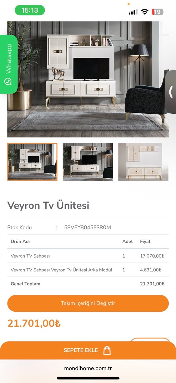 Veyron TV ünitesi beyaz renkte, çekmeceleri ve arka modülü ile fonksiyonel depolama alanı sunar. Ürünü sadece 7 aydır kullanıyorum. Herhangi bir deformesi yoktur. Şu an Mondi mağazasında 17.070 tl. Eşya fazlalığımdan dolayı satıyorum .