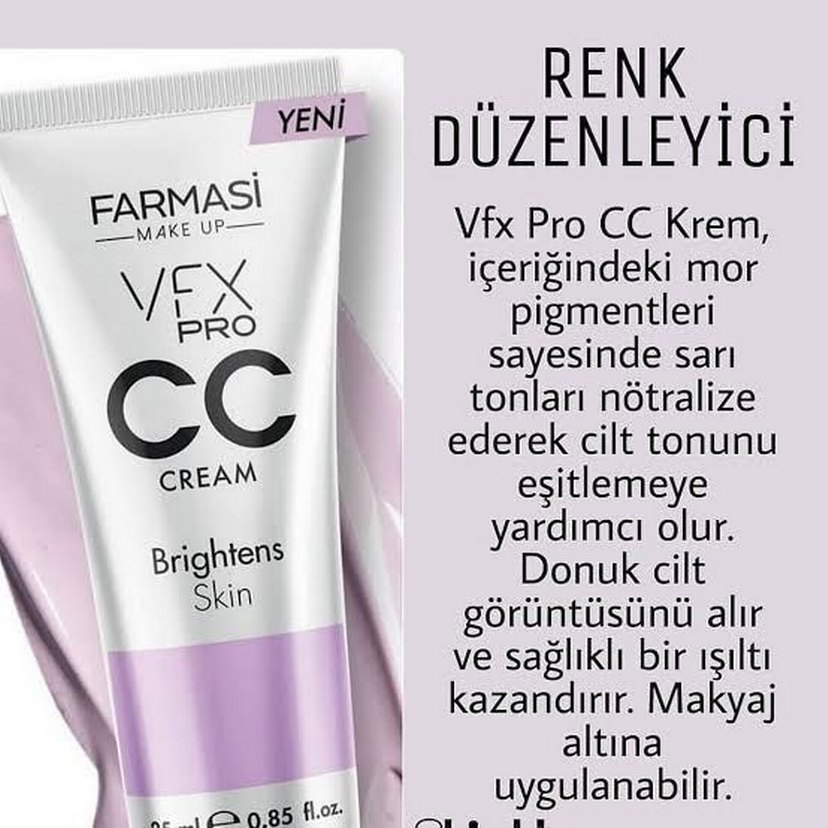 Vfx Pro CC Krem, içeriğindeki pigmentler sayesinde cilt tonunu eşitler ve donuk görüntüyü giderir. Makyaj altına uygulanabilir ve sağlıklı bir görünüm kazandırır.