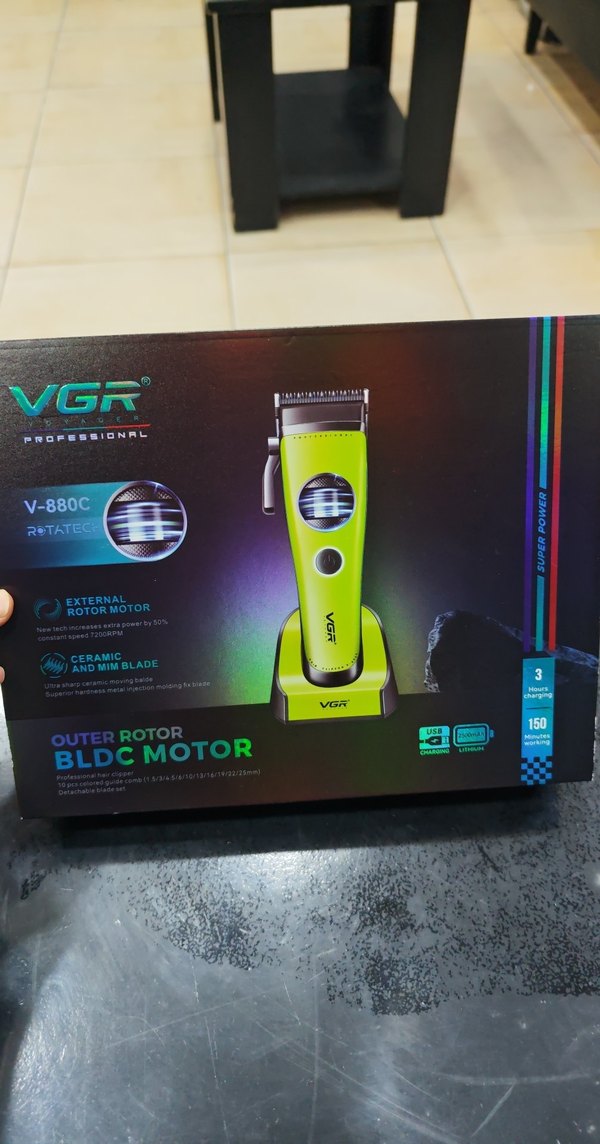 VGR profesyonel tıraş makinesi, renkli yeşil tasarım, dış rotor BLDC motor ve seramik 2 mm bıçak ile hassas kesim sağlar. USB şarj ve çoklu hız ayarları bulunur. ✂️