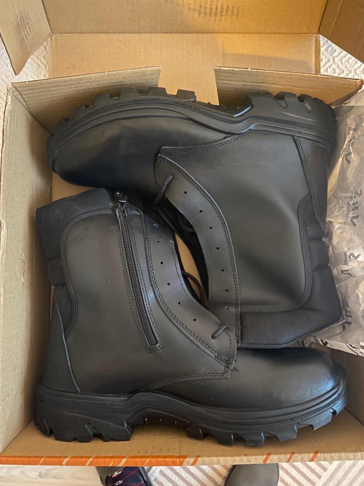 Siyah renkli, fermuarlı, kauçuk malzemeden yapılmış erkek biker botları. Günlük sokak stiline uygun, desensiz ve sade tasarım formalı meslek botu