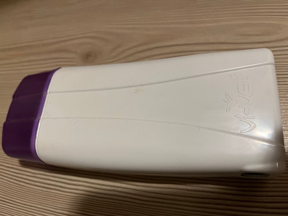 Vi-Vet roll-on ağda ısıtıcısı, şeffaf mor kenarlıklı çanta içinde. Ağda rulolarını kolayca ısıtmak için tasarlanmıştır.