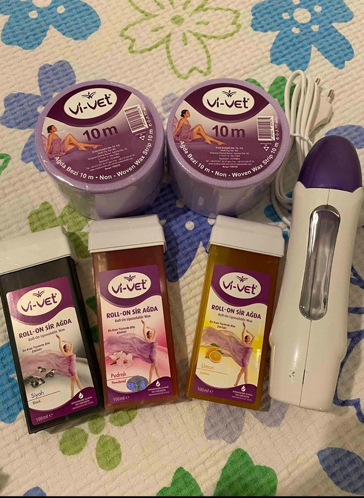 Sadece bir kez kullanıldı. Vi-Vet roll-on sir ağda seti, 10 metrelik iki roll ve farklı kokularda üç kartuş ile birlikte kolay kullanım için ısıtıcı içerir.