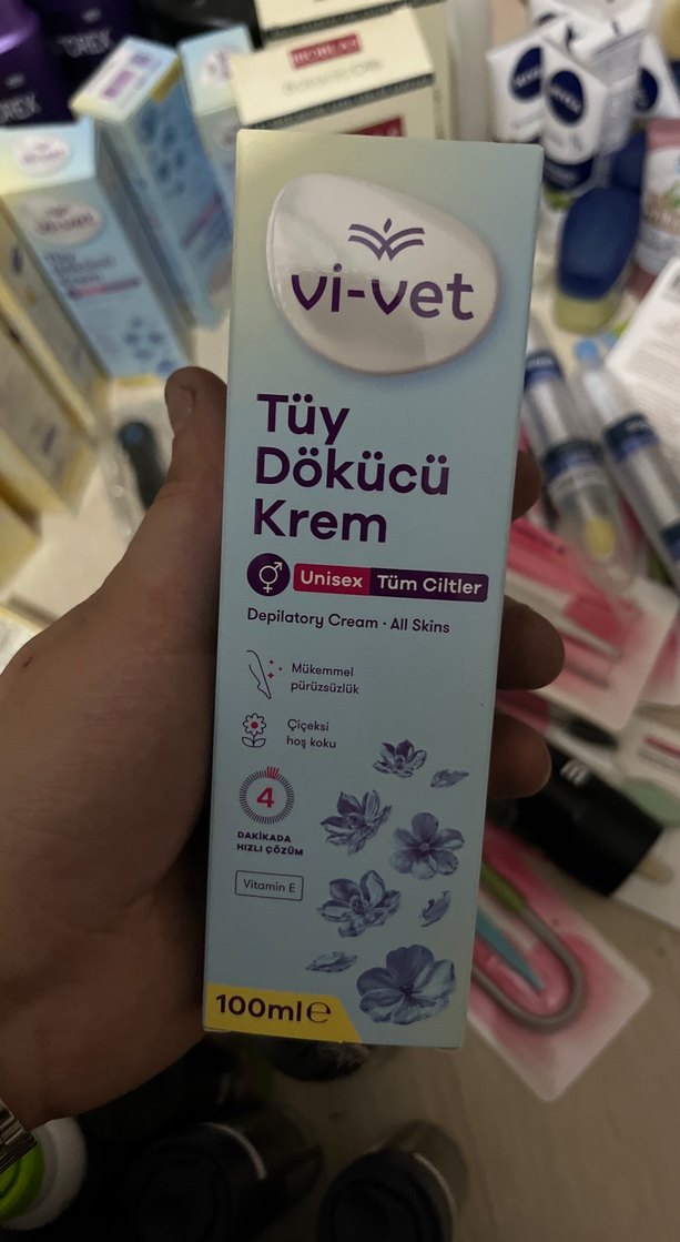 Vi-Vet tüy dökücü krem, tüm cilt tipleri için uygundur. Çiçeksi hoş koku ve vitamin E içerir, 4 dakikada etkili sonuç sağlar.