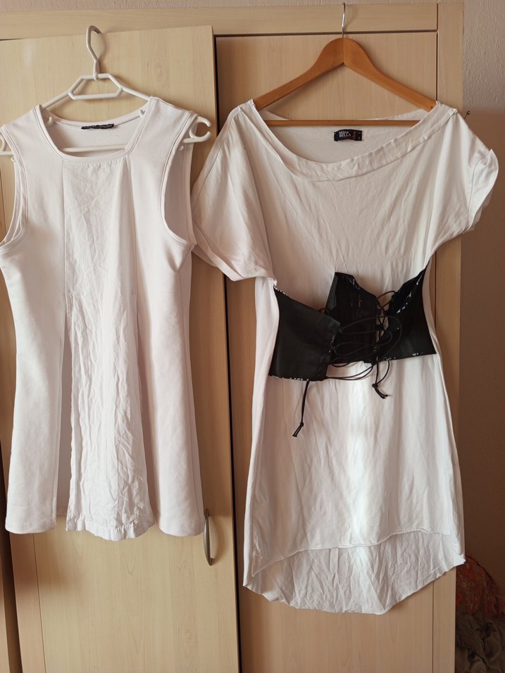#vdr İki Beyaz elbise, biri korse detaylı. Sadece bir iki kez giyildiler. Birinde ufak bir leke var, çıkar diye düşünüyorum. S beden ama 42ye kadar uyar.
