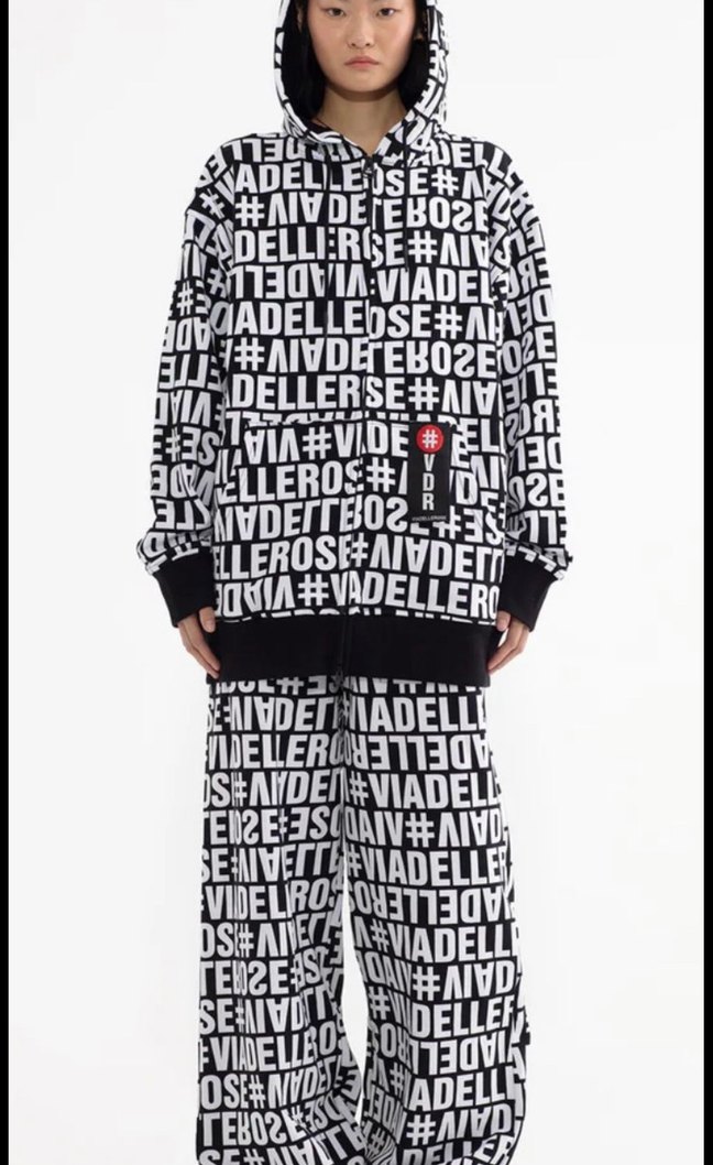 Baskılı, kapüşonlu ve uzun kollu rahat kesim sweatshirt ve triko kumaşıyla sokak modası ve athleisure stilini birleştirir.