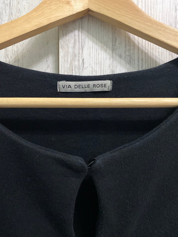 Kadınlar için V yakalı, düğmeli, uzun kollu elbise. Rahat kesim, midi boy ve baskılı desen ile günlük kullanıma uygundur. Üzerinde 'VIA DELLE ROSE' etiketi bulunur.