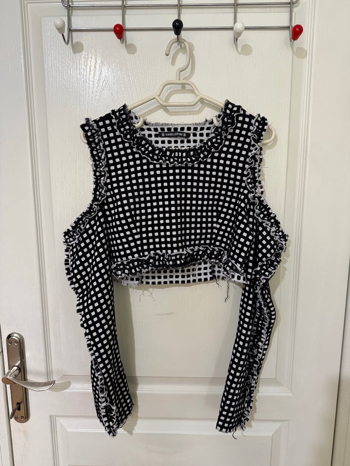 Viadellerose Kadın Siyah Kareli Fırfırlı crop Bluz