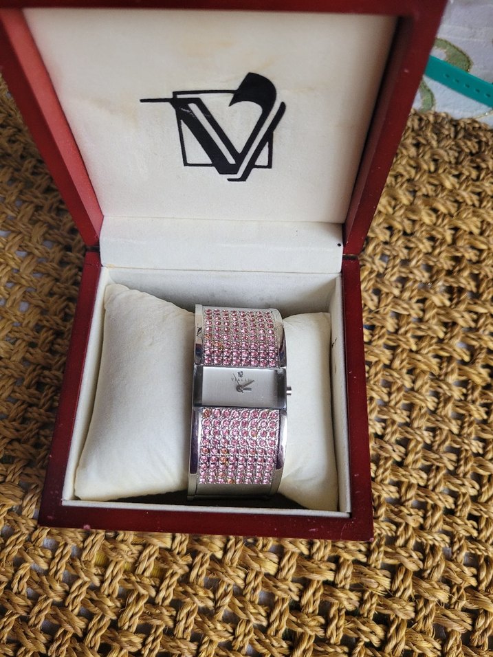 Vialli İsviçre Taşlı Bileklik Kadın Saat .Saat sandık malı yeni gibidir. Taslarinda eksik yoktur. Pembe payetli kayışı ve dikdörtgen gümüş kasa detaylarıyla kadın kol saati. Klasik şıklığı renkli tarzla buluşturur, kutusunda sunulur. ⌚