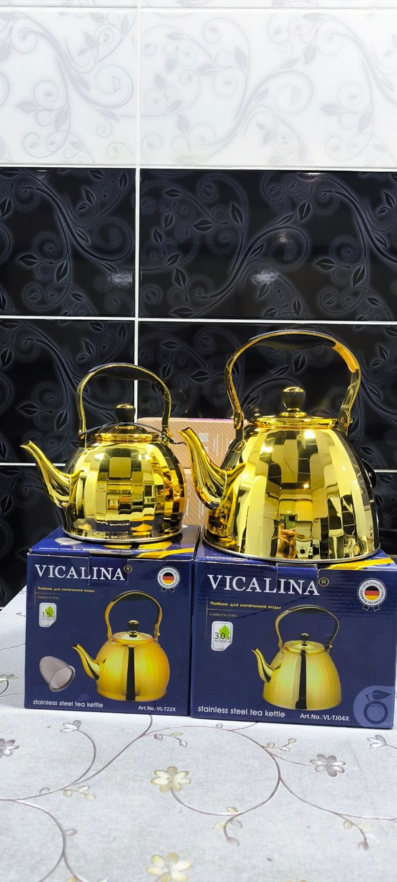 ✅Vicalina markalı sarı renkli, paslanmaz çelikten yapılmış 1.5L ve 3.0L kapasiteli çaydanlıklar. Dayanıklı ve renkli tasarıma sahip.