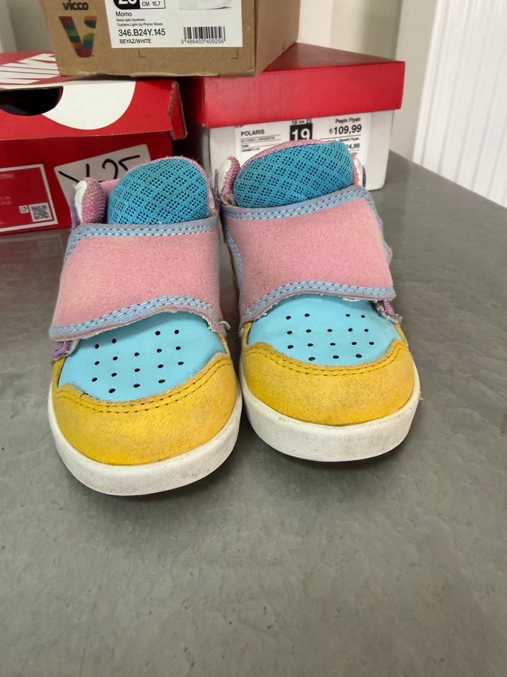 Kız çocukları için renkli, cırt cırtlı spor ayakkabı. Lastik tabanlı, sokak modasına uygun ve tie-dye desenli.