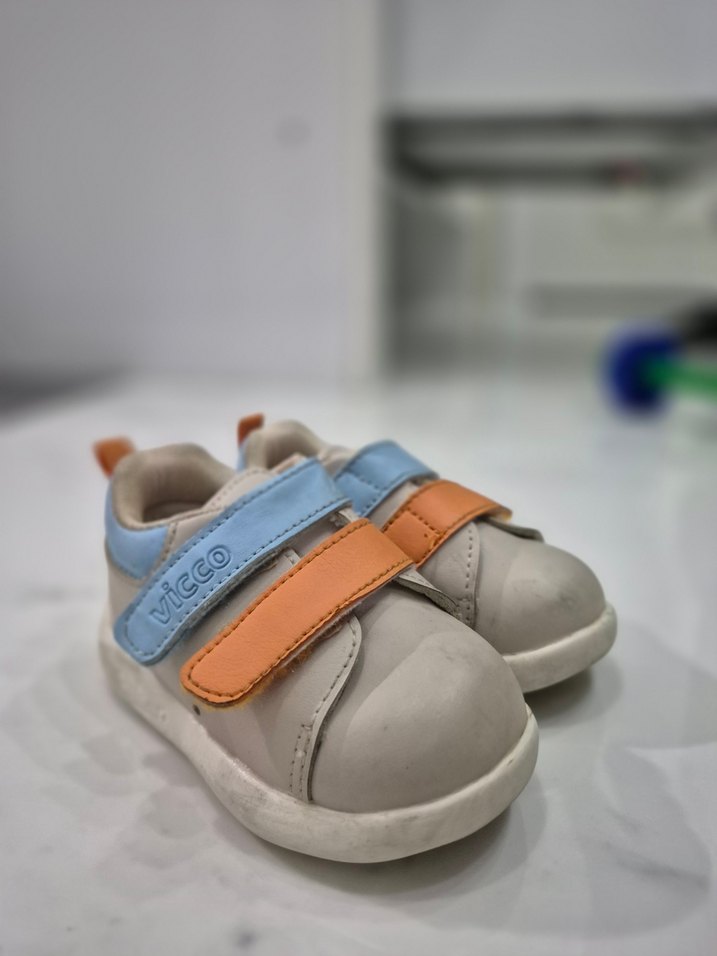 Bej renkte, pastel tonlarda erkek çocuk spor ayakkabısıdır. Kauçuk tabanlı ve kolay kullanımlı Velcro bantlara sahiptir. Sokak stiline uygundur. Hiç bir deformesi yok artık küçük geliyor