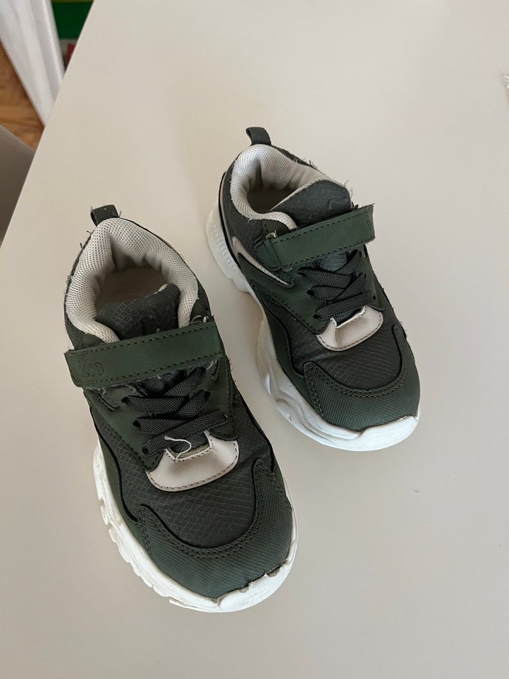 Yeşil ve gri yılan desenli, cırt cırtlı ve kauçuk tabanlı erkek çocuk spor ayakkabısı, 30 numara kullanıldı ama genel olarak temiz