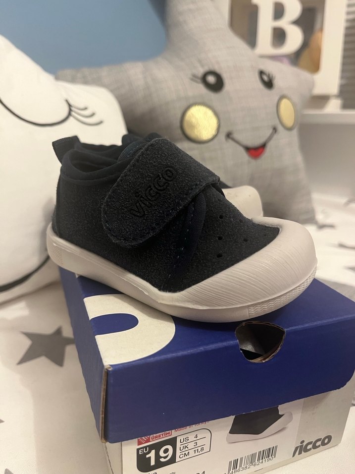 Vicco marka lacivert bebek ilk adım ayakkabısı, cırt cırtlı ve dayanıklı kauçuk tabanlıdır. 1 kez ev içinde giyildi sıfır ayarında. Kutusuyla birlikte göndereceğim