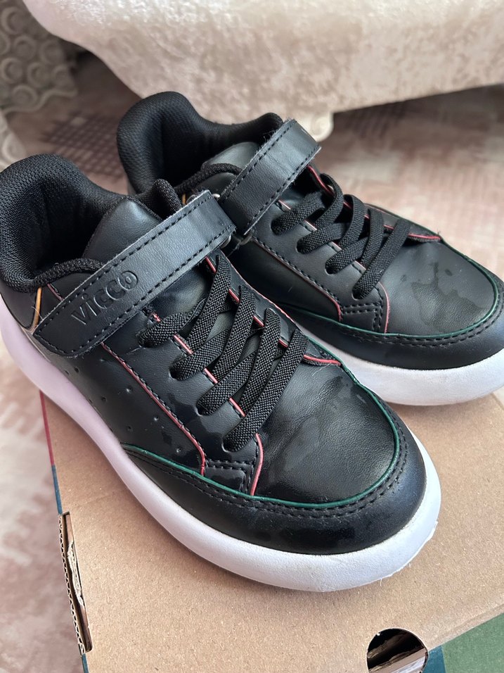 Siyah renkli, süs bağcıklı ve vicco bantlı erkek çocuk spor ayakkabısı. Lastik taban dayanıklı ve rahattır. Sokak stili için uygundur. Birkaç kez giyilmiştir.