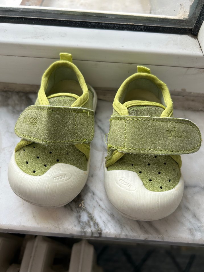 Yeşil ilk adım ayakkabısı. Kaymaz kauçuk taban ve cırt cırtlı kapanışlı. Cırtları sağlam Aynı resim de görüldüğü gibi Unisex Alan pişman olmaz