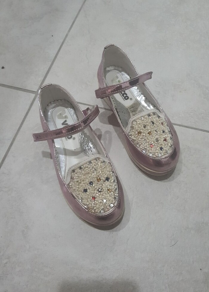 Az kullanıldı,rahat bir ayakkabı.Taşlarının birkaçı eksik ama belli bile değil.Sol çiftin önünde çok az çizik var.Kullanıma engel değil.