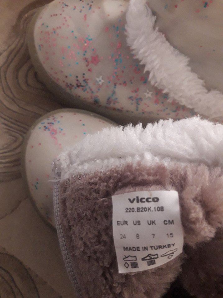 Vicco kız çocuk bej renkli, baskılı ve sentetik kumaşlı sıcak bot Velcro kapanışlı ve Türkiye'de üretilmiştir.