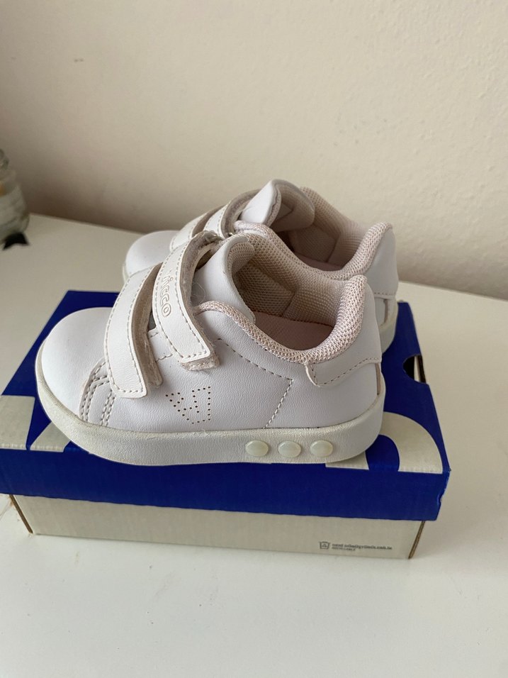 Cırt cırtlı, beyaz kız çocuk spor ayakkabısı, kauçuk malzemeden, sade ve desen içermeyen sokak stiliyle tasarlanmıştır. Hafif ve temel bir modeldir. Çok az kullanıldı