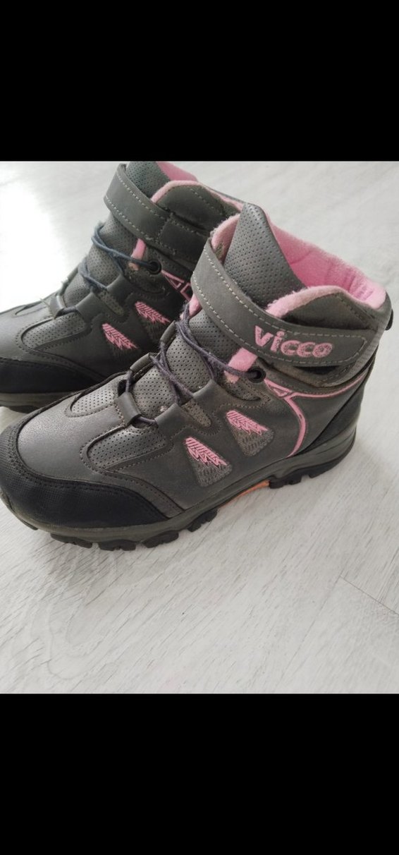 Vicco marka gri ve pembe renkli kız çocuk botları, kauçuk taban ve cırt cırtlı kapanışa sahiptir. Trendy casual sokak stili için uygundur. 32 numara ama dar kalıp. olduğu. için 30 numaraya. daha uygun