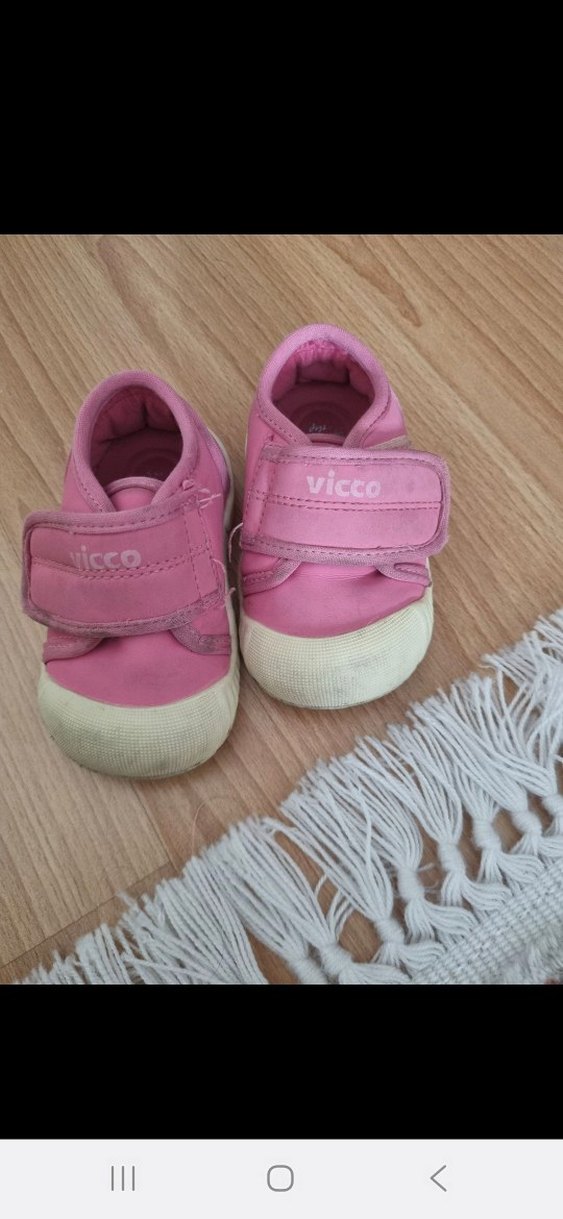 Vicco marka, pembe renkte, cırtcırtlı ve lastik tabanlı kız çocuk spor ayakkabısı. Pastel tonlarda sade tasarıma sahiptir. az kullanıldı deformasyonu yoktur